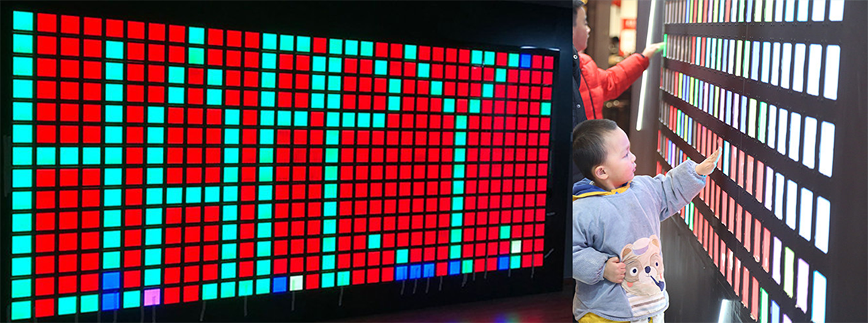 产品简介 七彩像素灯是一种模块化的触摸互动装置,每一片灯都是单独触控的,用户可以用手去触摸任意一片灯片,从而控制颜色的变化,组合成任意想要的图案或字母。 这个互动装置不但十分具有娱乐性,还具有非常高的观赏性。还可搭配控制器实现反应力训练。