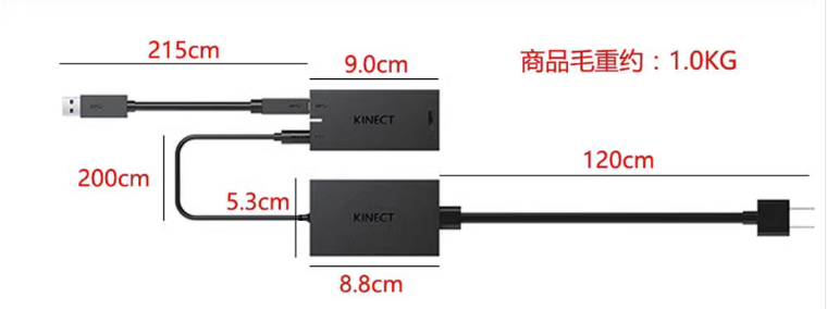 答:kinect摄像头需放置在画面前方,离地约60cm的位置,尺寸如图1,kinect摄像头的连接线尺寸如图2.我司提供的电脑主机尺寸约为:300mm*170*350mm。